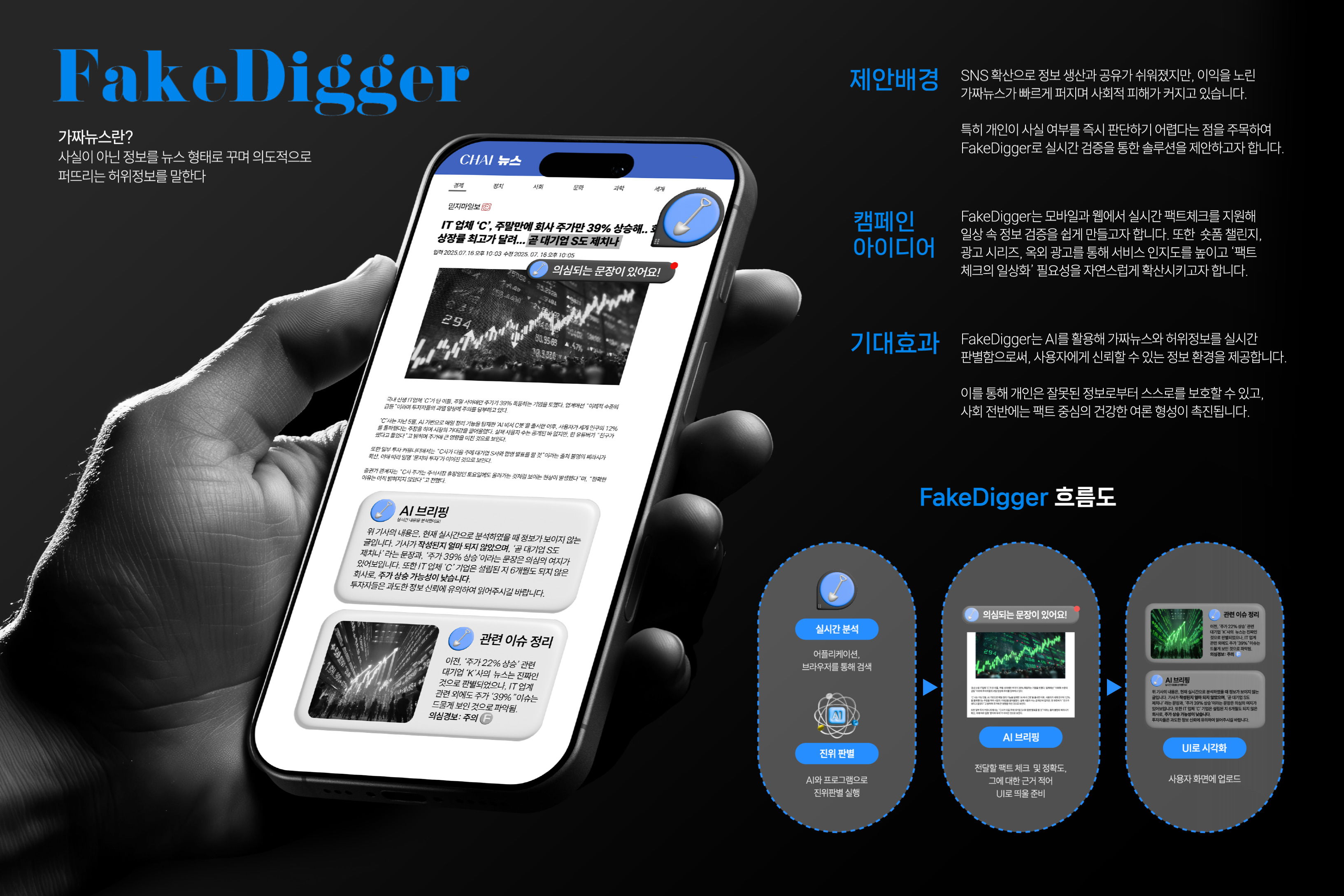 - 작품명 : FakeDigger: 땅 파면 돈 안 나와도, 뉴스 파면 진실 나옵니다