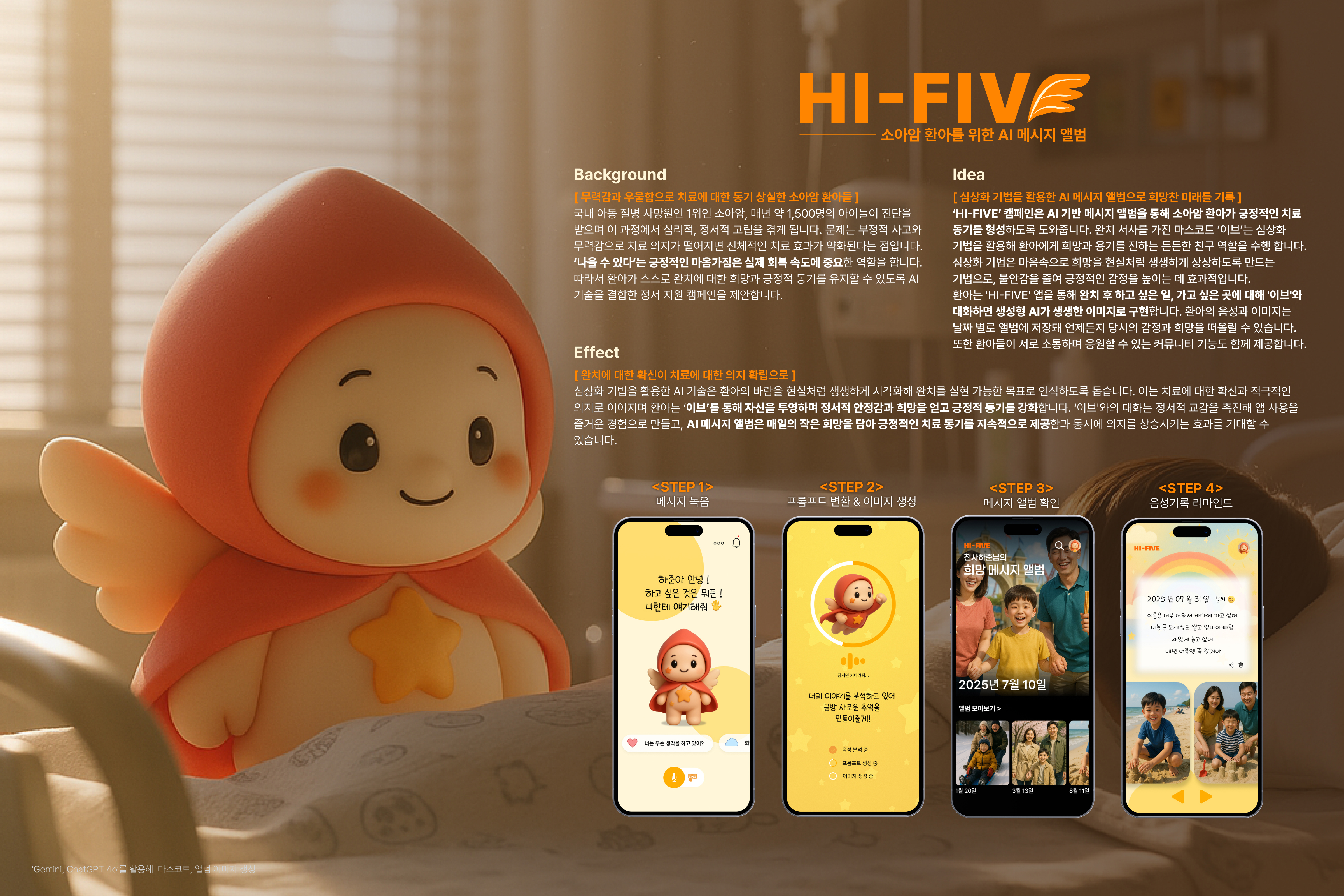 - 작품명 : 소아암 환아를 위한 AI 메시지 앨범, HI-FIVE