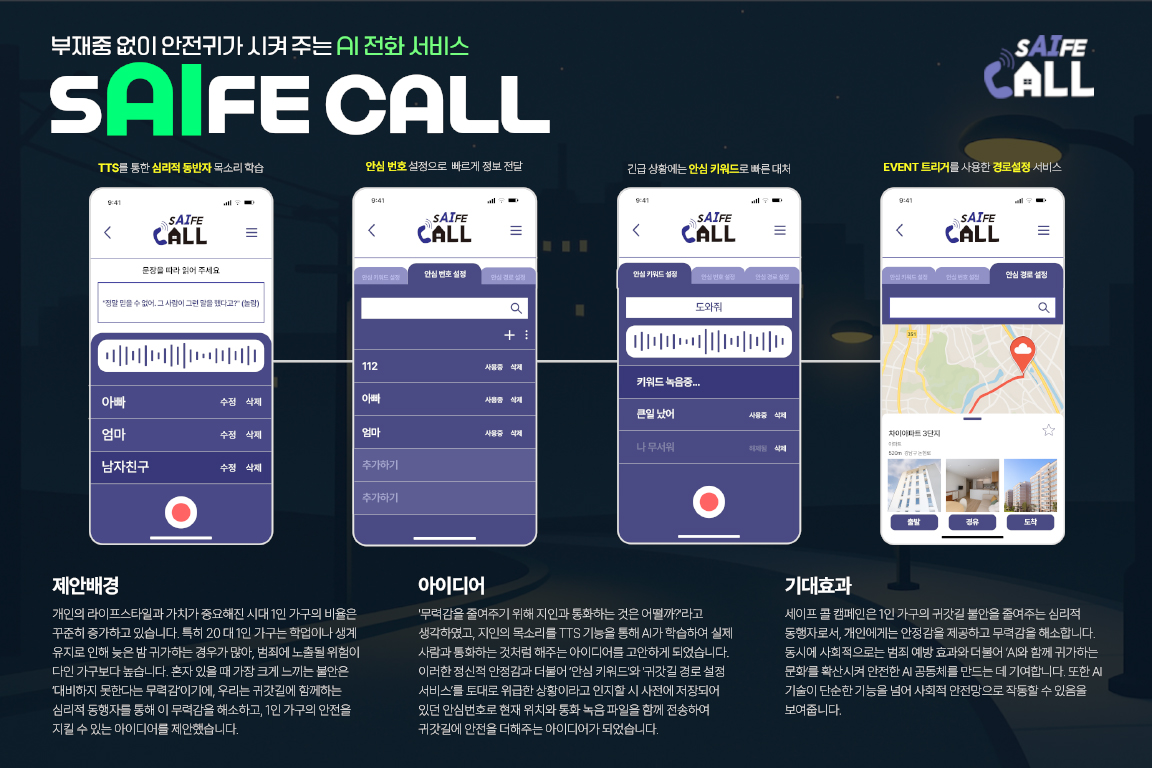 - 작품명 : 부재중 없는 안전귀가 AI 전화 서비스 - sAIfe Call